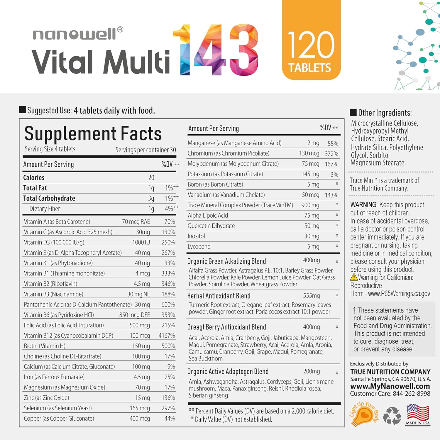 Vital Multi 143 – Multivitamin & Multimineral Supplement with 20 Vitamins and 72 Minerals,143 Ingredients Total – 120 Tablets, 30 Day Supply