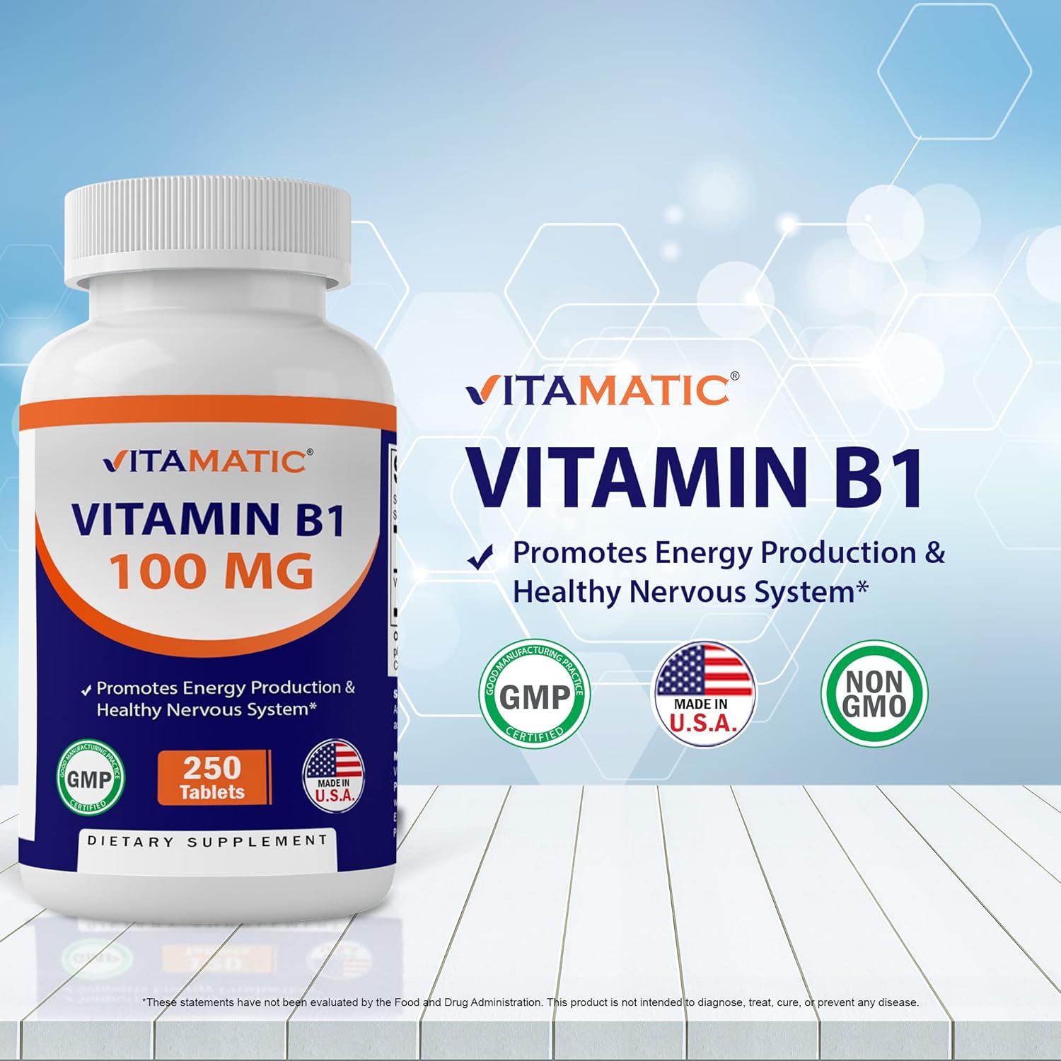 Vitamatic Vitamin B1 (As Thiamine Mononitrate) 100 mg – 250 Vegetarian Tablets