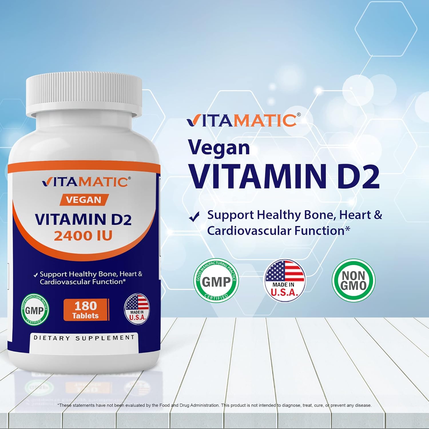 Vitamatic Vitamin D2 60 mcg (2400 IU) – Ergocalciferol – 180 Vegetarian Tablets (180 Tablets (Pack of 1)) (1 Bottle)