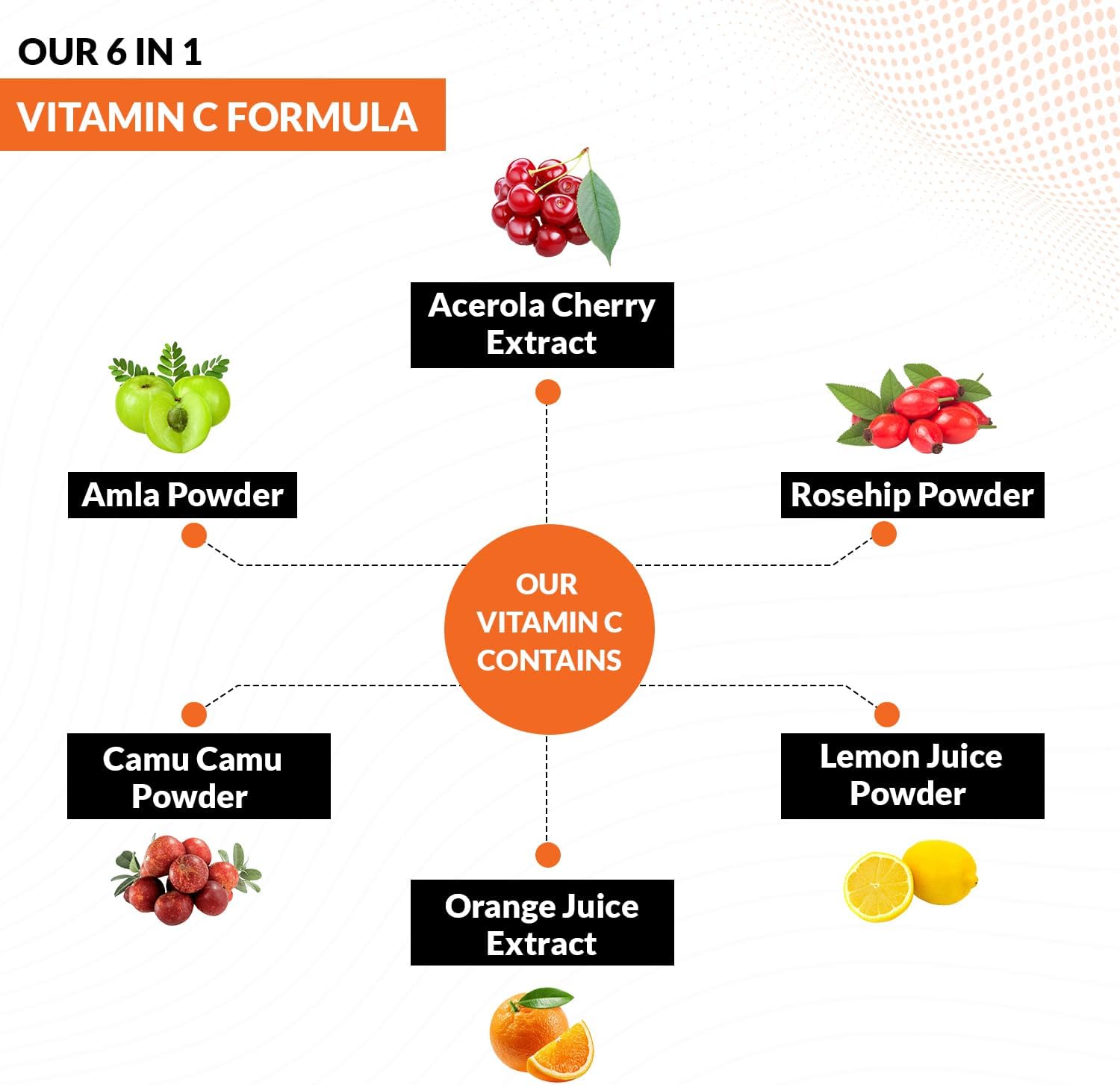 Science Backed Proprietary Blend: ABSORBABLE Vitamin C complex comes with 6 natural sources of Vitamin C that help to boost the bioavailability and absorption.