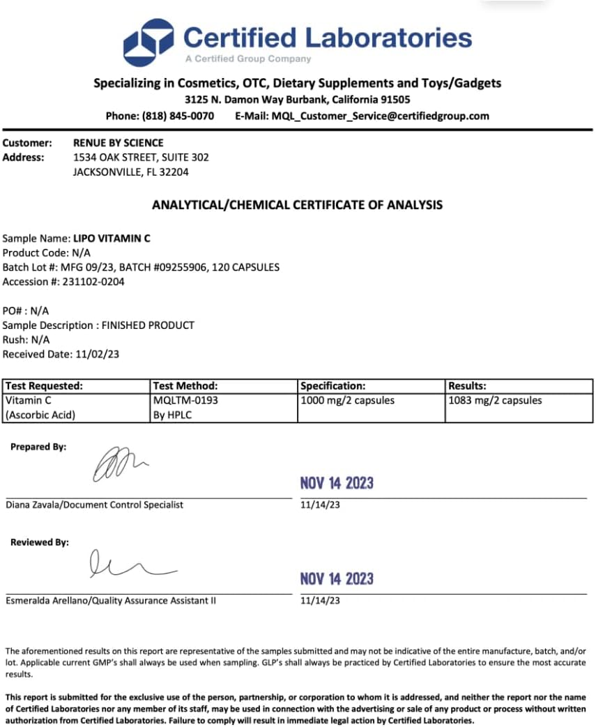QUALITY AND SAFETY ASSURED – Vitamin C (Liposomal) 120 Ct. is allergen-free, manufactured in a GMP compliant, FDA registered facility, and undergoes rigorous third-party testing to ensure the highest quality standards for your well-being.