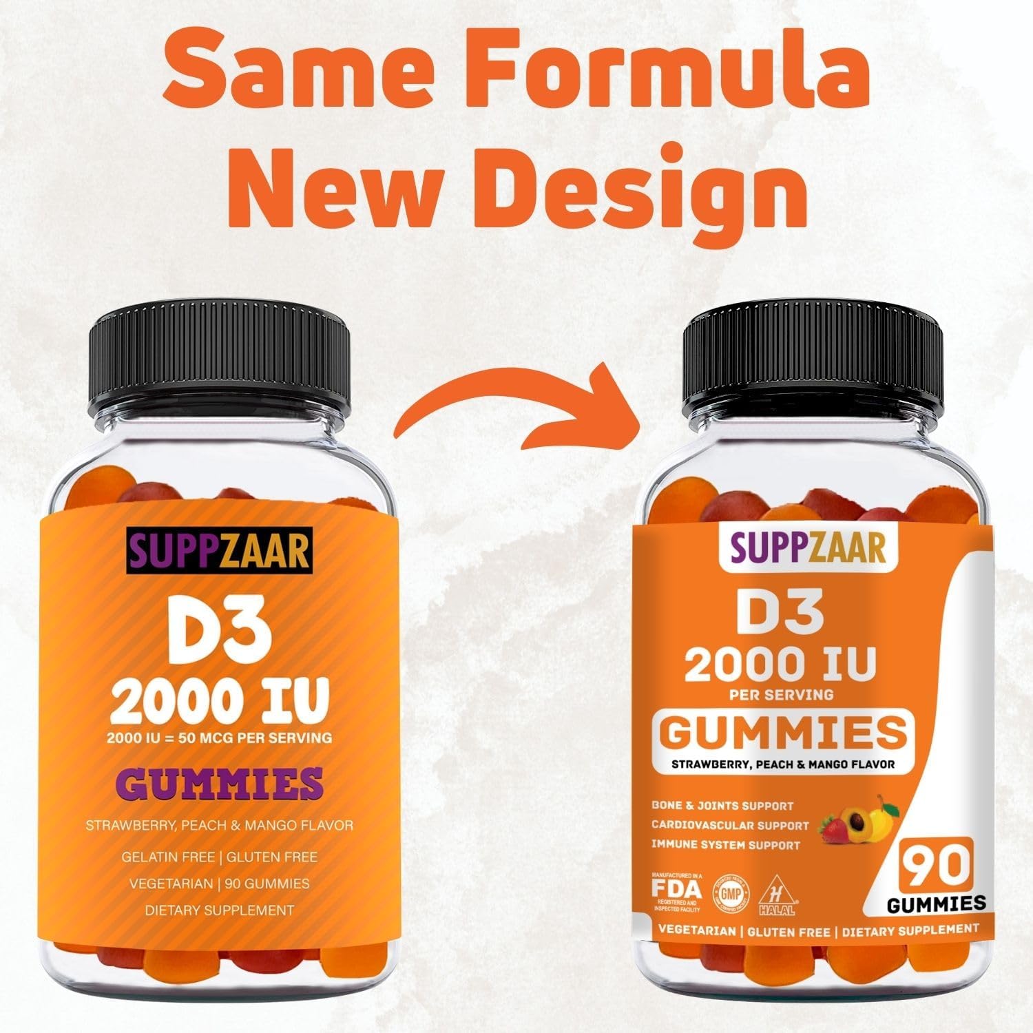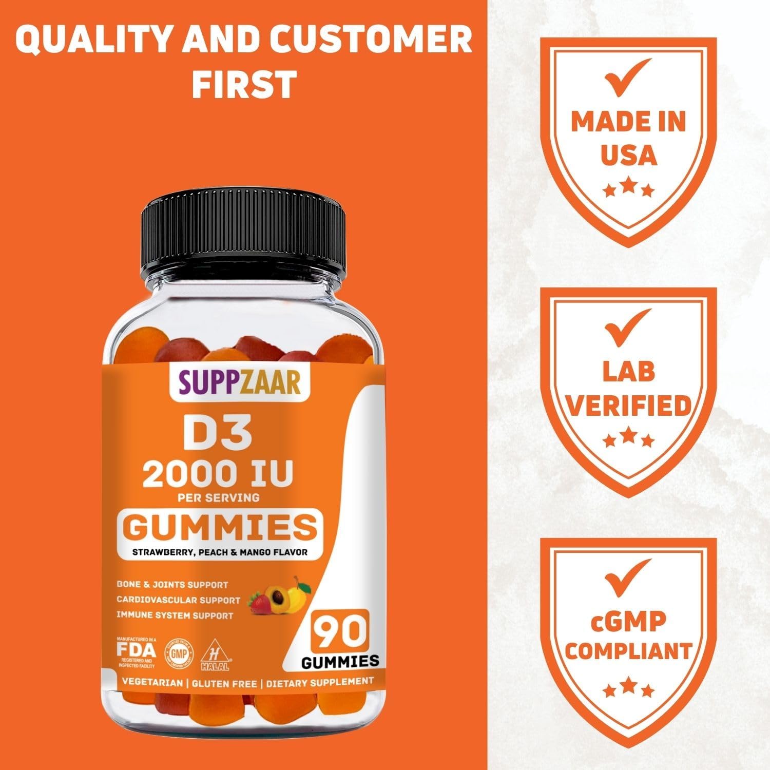 ✔️ All Around Health Benefits: SUPPZAAR Vitamin D3 2000 IU Gummies support Bones and Joints, Cardiovascular Health, Immune Health, Physical Strength, and Cognitive and Muscle Functions.