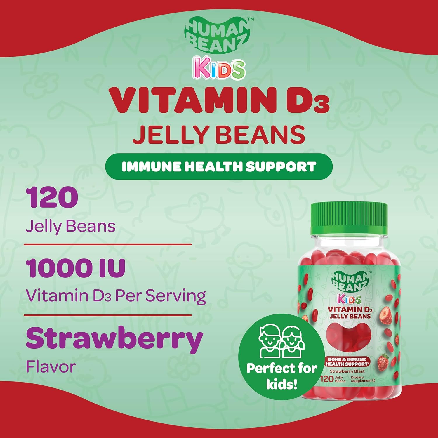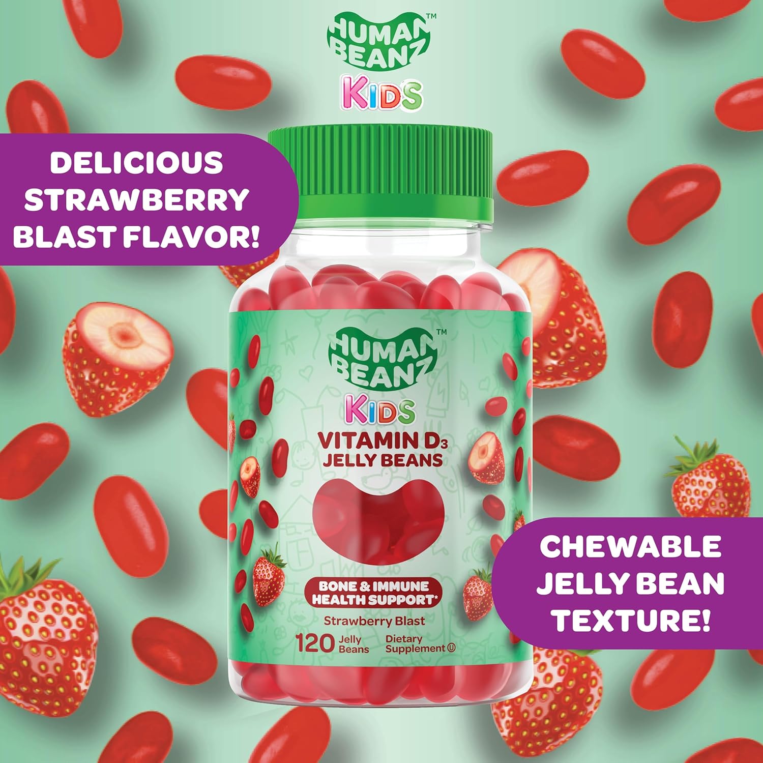 VITAMIN D JELLY BEANS FOR CHILDREN The best way for kids to take daily supplements. Our Vitamin D jelly beans are an easy, enjoyable way to enrich your child’s nutritional intake, with a delicious Strawberry Blast flavor and unique chewable jelly bean texture.