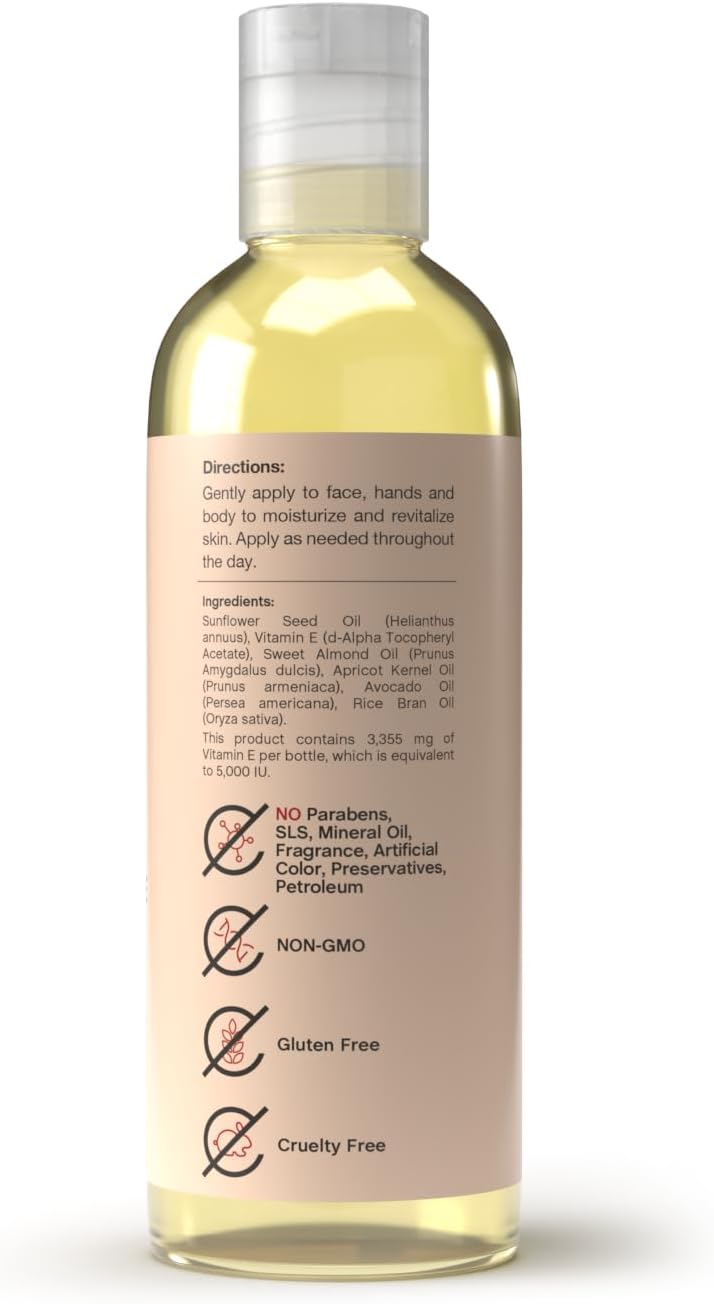 Vitamin E Oil | 5,000 IU | 4 fl oz | Moisturizing & Nourishing Skin Oil for Face, Hands, and Body | Free of Parabens, SLS, & Fragrances
