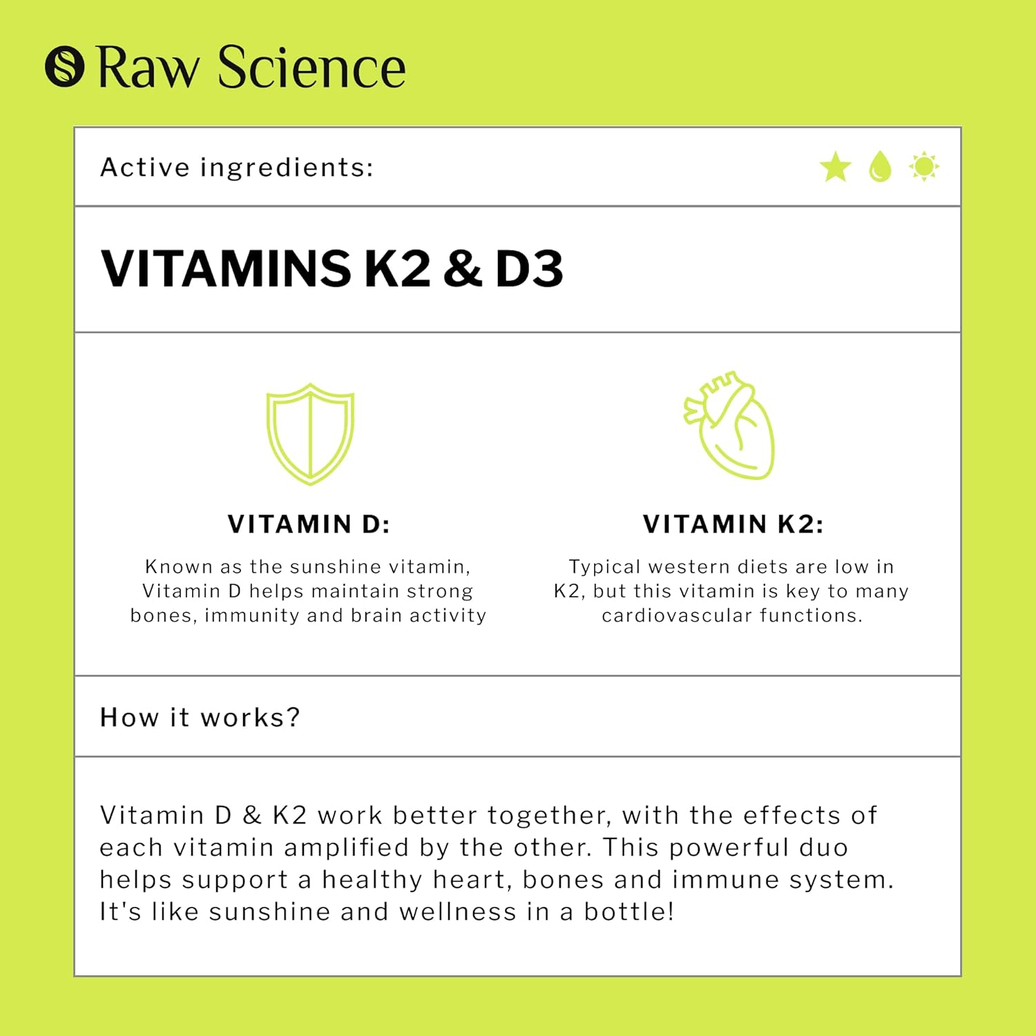 【EFFICIENT ABSORPTION】- Raw Science K2 D3 drops deliver vitamin D with K2 5000 IU in one dropper, ensuring fast, effective uptake. Simplify your routine while getting the essential benefits of vit D plus K for comprehensive health maintenance.