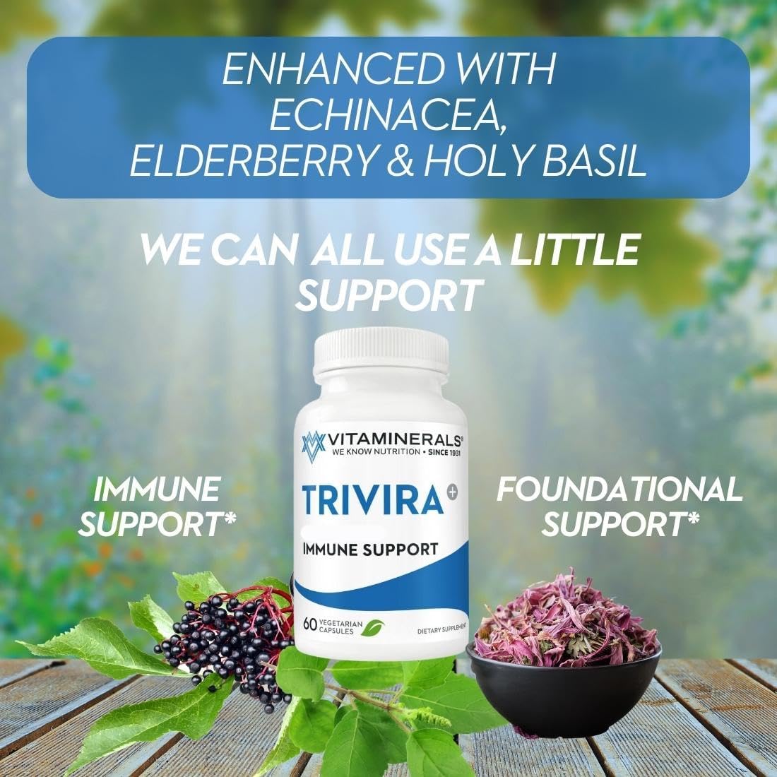Vitaminerals 129 Trivira Plus, Immune Support with Vit C, Zinc, D3 and more, all in a convenient veggie capsule.