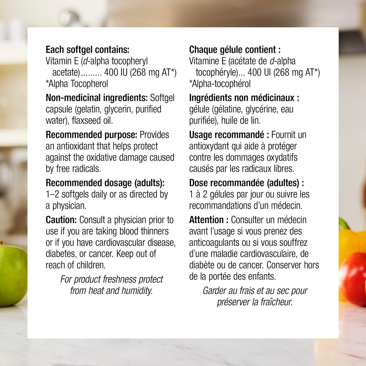 Webber Naturals vitamin E softgel provides antioxidant protection against oxidative stress. Vitamin E is the premier nutrient for checking and disarming health threatening free radicals. Protects vitamins A and C from oxidation. Able to protect cell membranes. This natural-source vitamin E is an antioxidant and an important nutrient for heart health and more. Includes 120 softgels per pack.