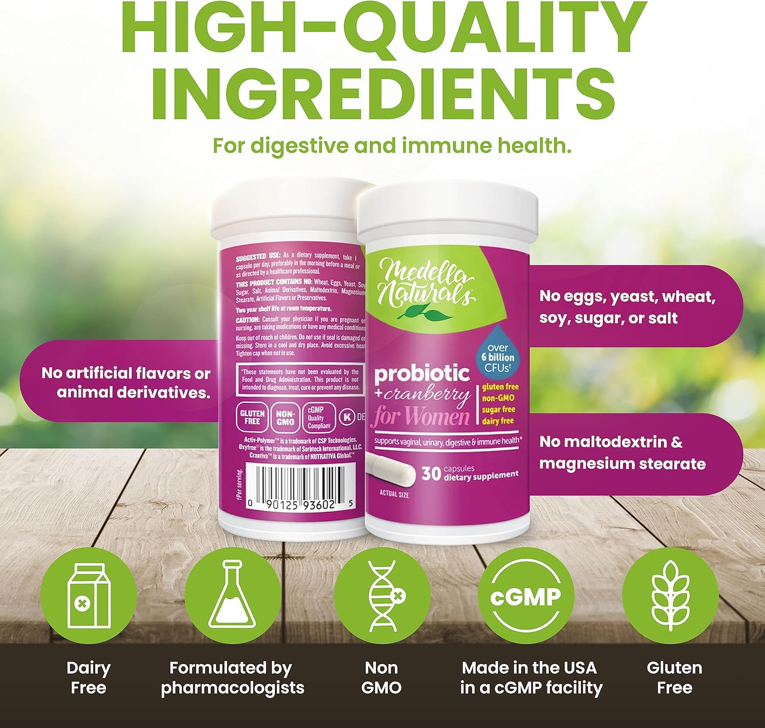 Women’s Probiotic + Prebiotic with Cranberry – 6 Billion CFU, 4-Strain Prebiotic Probiotic Women to Support Vaginal, Urinary, Immune & Digestive Health – Made in the USA, 30 Veggie Capsules